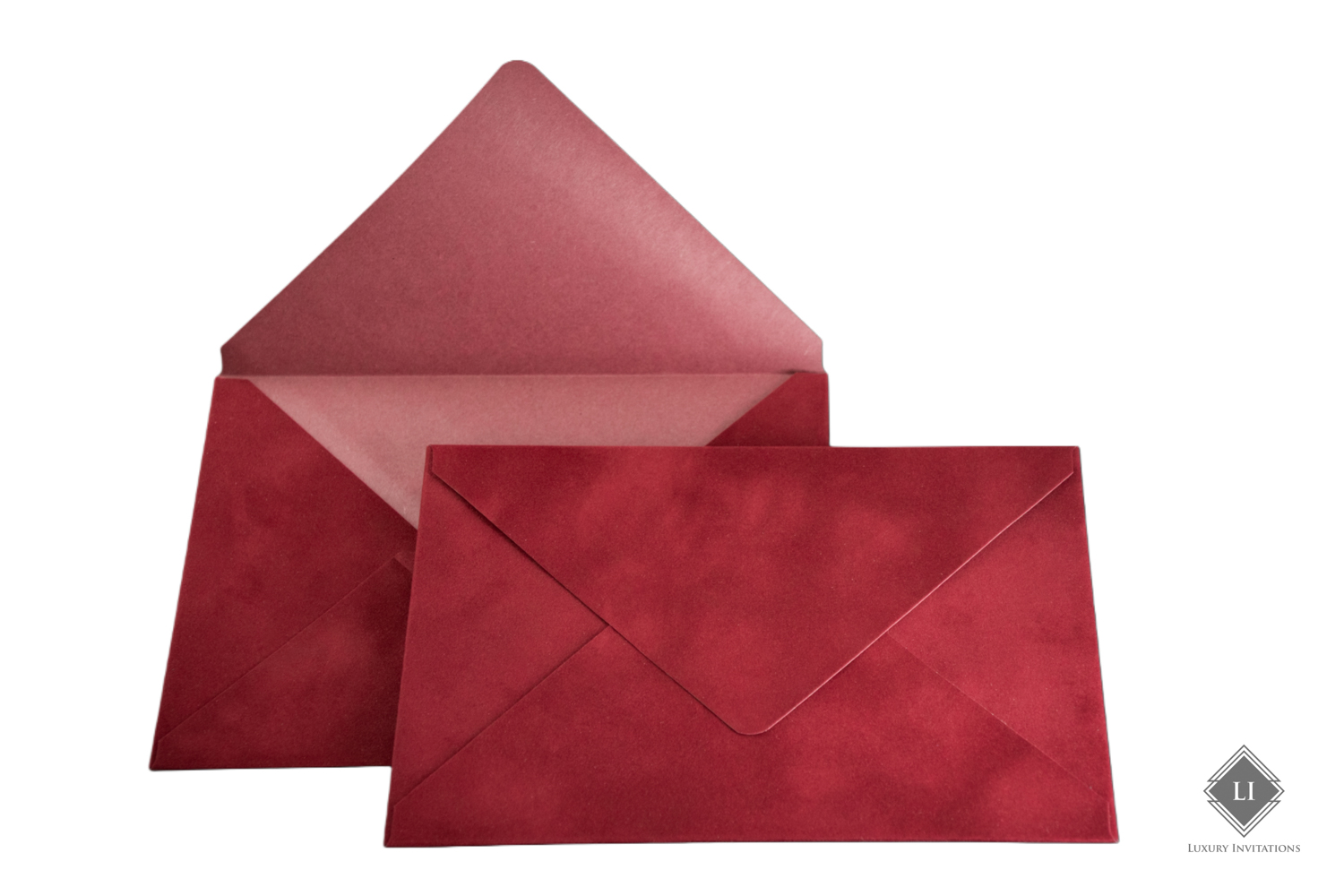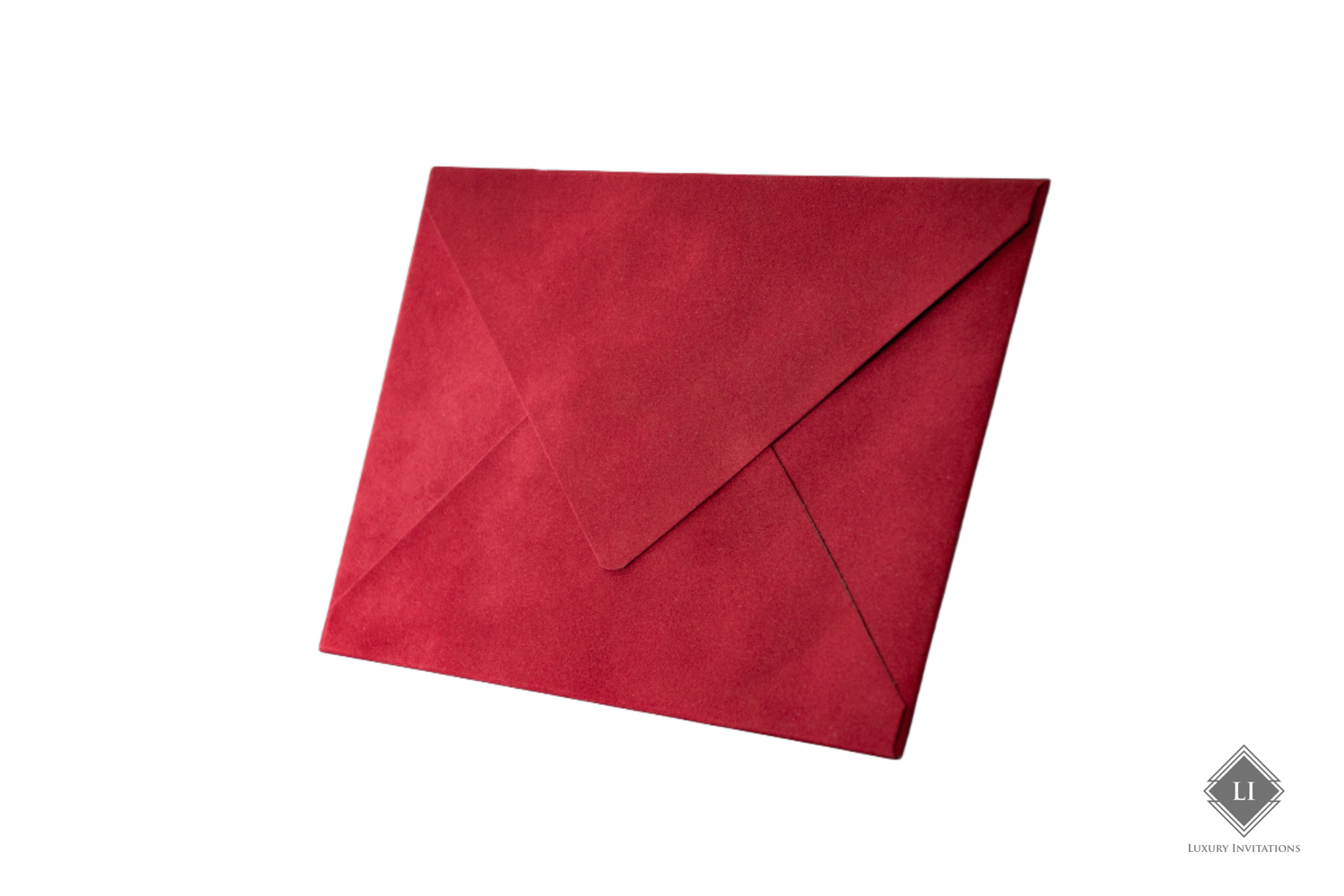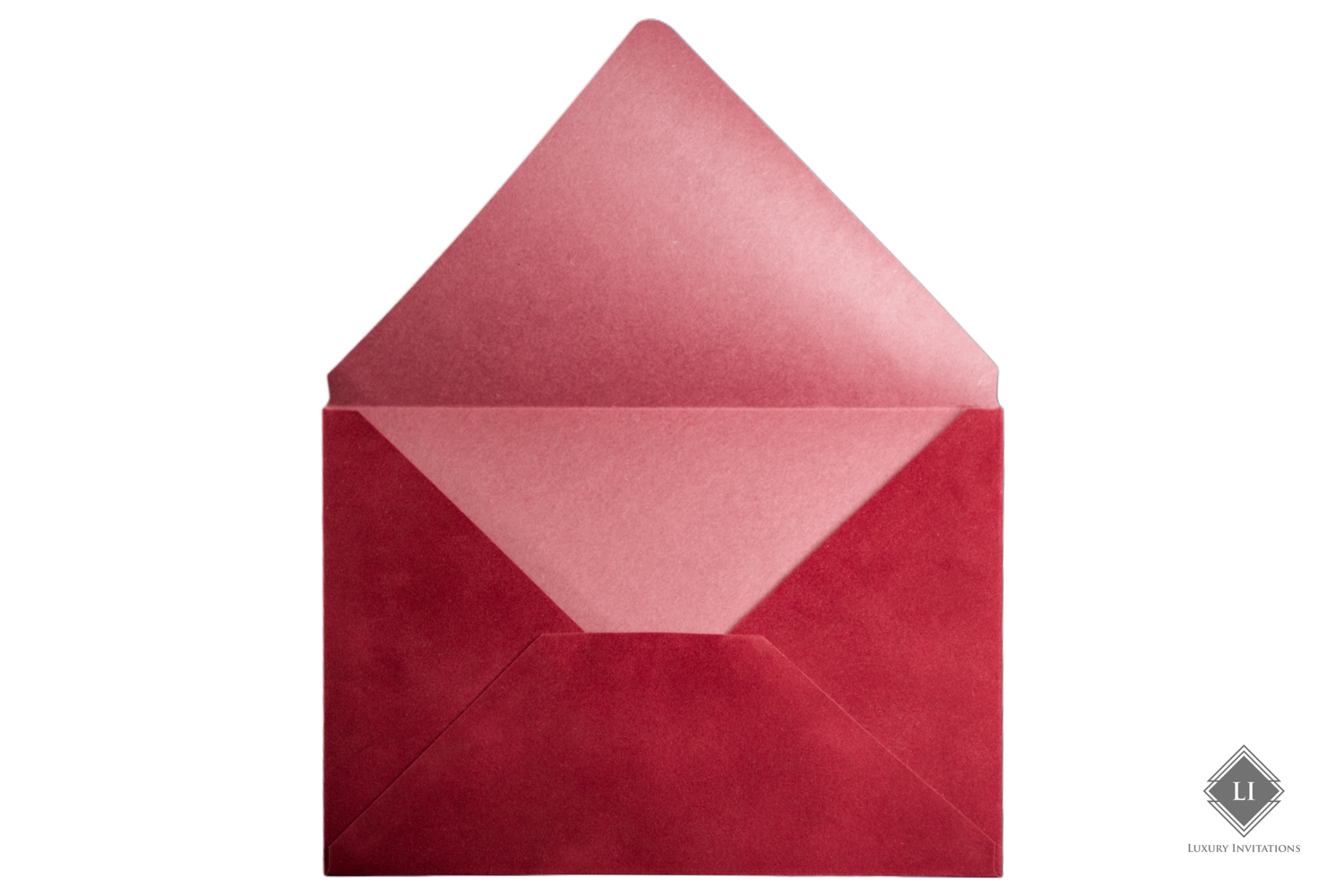 Acest model de plic este rosu aprins, realizat hand made cu un aspect fin velvet. Interiorul este de culoare rosu, Clapeta plicului este in forma de V, iar deschiderea se realizeaza pe latura mare.