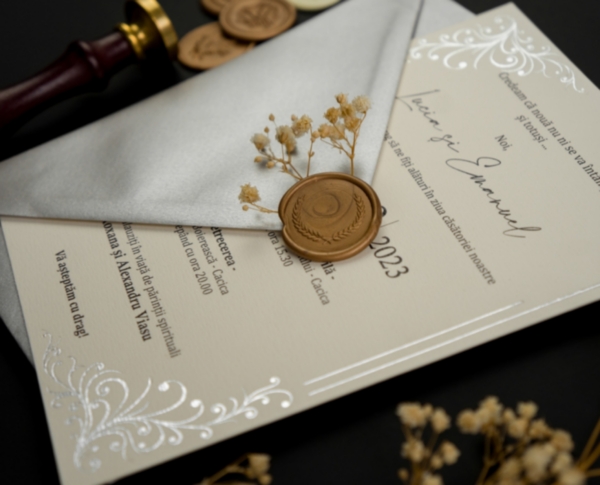 Invitatii nunta personalizate folio argintiu